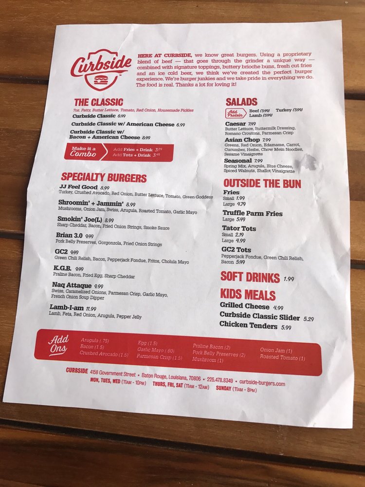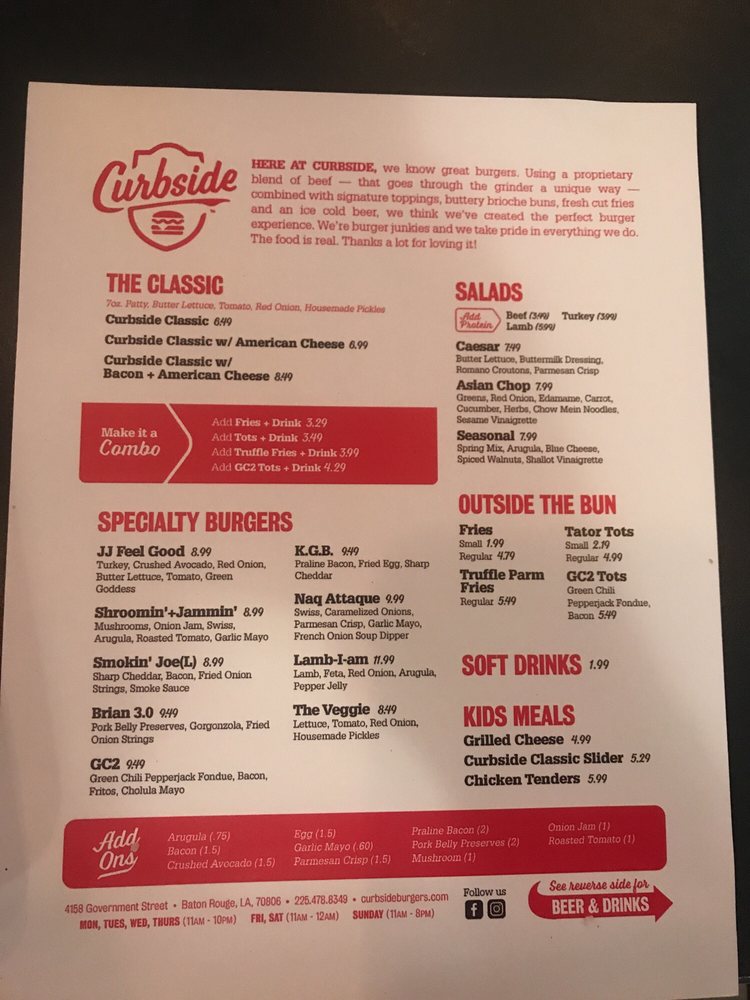 Curbside Burgers, located in Baton Rouge, offers a diverse menu of creative and delicious burgers. The restaurant, originally a food truck, now boasts a trendy indoor seating area and an inviting outdoor courtyard with live music. The menu features unique options like the KGB Burger with praline bacon and a fried egg, as well as turkey and lamb burger choices. Customers praise the flavorful burgers and the option to build your own. In addition to burgers, Curbside offers sides like fries and tater tots, as well as milkshakes, root beer floats, and boozy shakes. With a full bar and diverse beer selection, this spot is perfect for a relaxed lunch or dinner. Don’t miss out on the tasty burgers and lively atmosphere at Curbside Burgers!